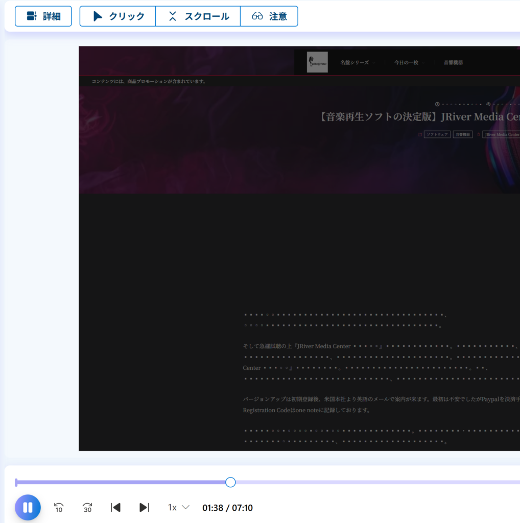 サイトにアクセスしている間を動画として記録しているようです。動作についてここで確認することができます。