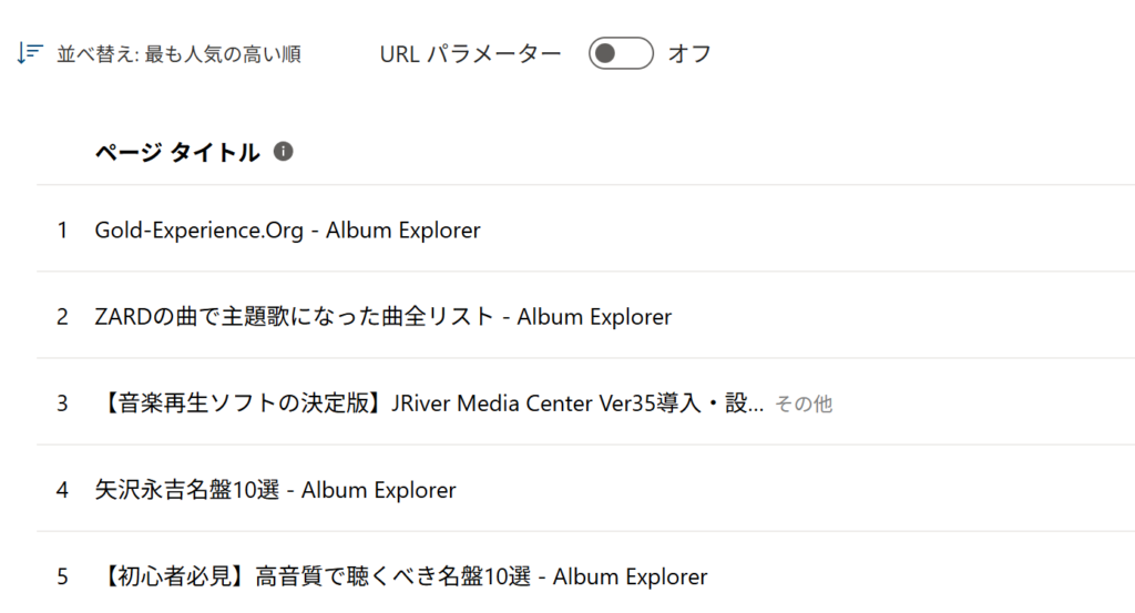アクセス数の多い順に表示してくれます。右端にはアクセス数も表示されています。