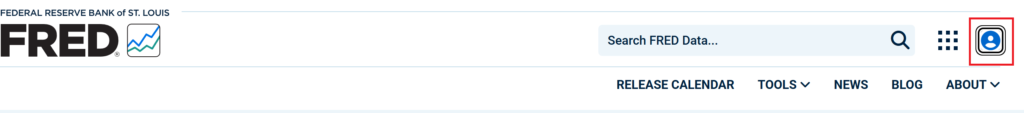 FREDにアクセスしたら下記の右端赤枠の部分を見つけてクリックしてください。