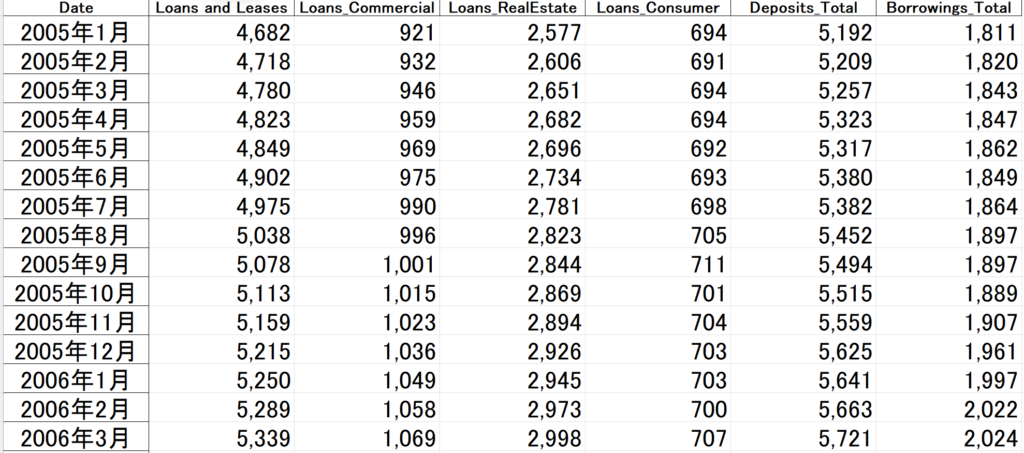 FREDとはFederal Reserve Economic Dataの略でセントルイス連邦準備銀行の調査部門が管理するデータベースです。H.8レポートは正式には「Assets and Liabilities of Commercial Banks in the United States(米国の商業銀行の資産と負債)」といい、ここのデータは景気の行方を知るのに有益です。